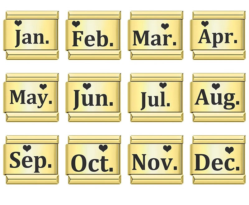 Diese eleganten Monats-Charms stehen für besondere Momente, Geburtstage oder Herzensmenschen. Jeder Charm ist mit einer Monatsabkürzung und einem kleinen Herz graviert – dezent, zeitlos und persönlich.